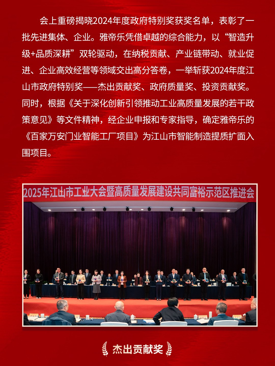 開工迎喜訊!雅帝樂榮膺2024年度江山市政府特別獎三項殊榮!